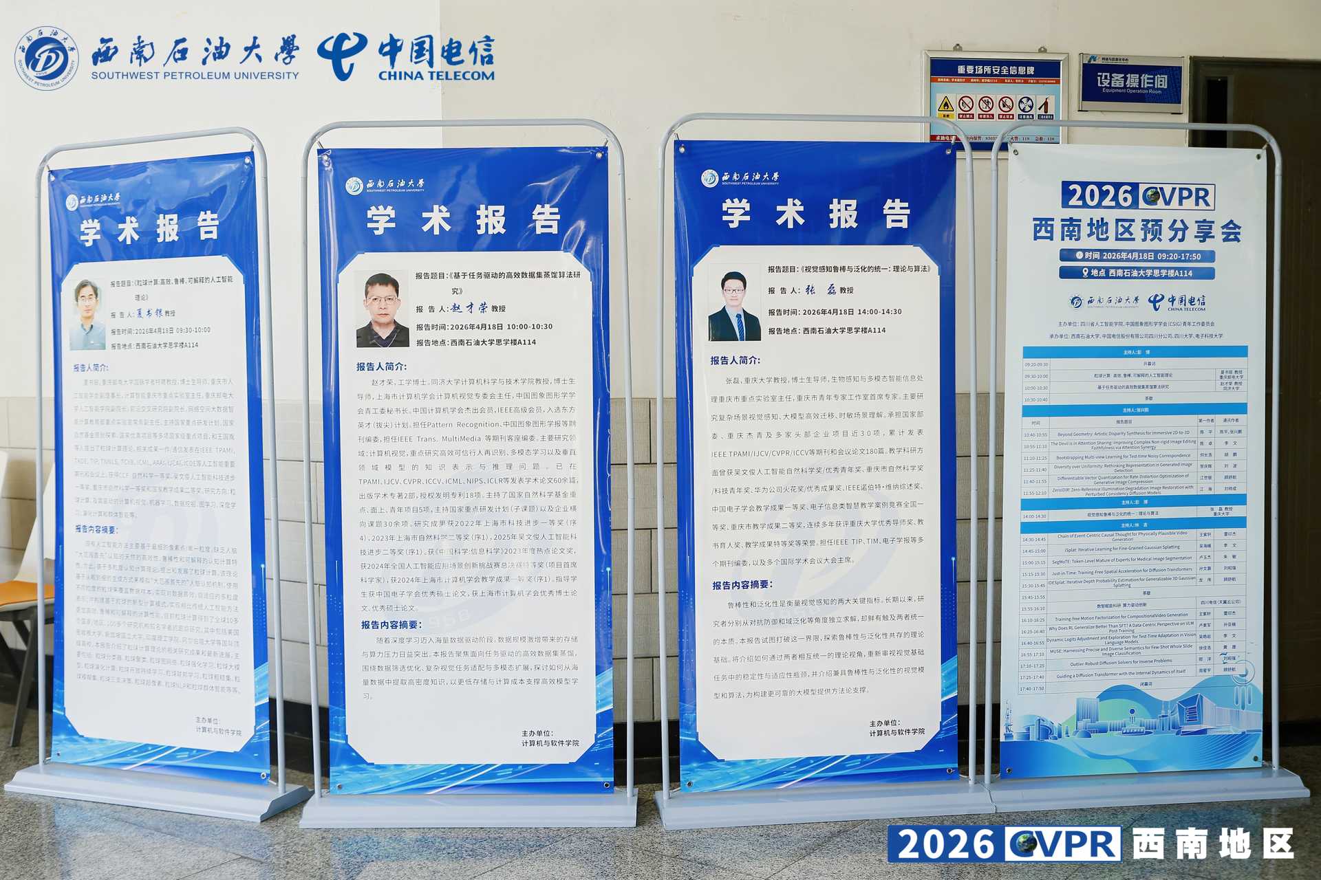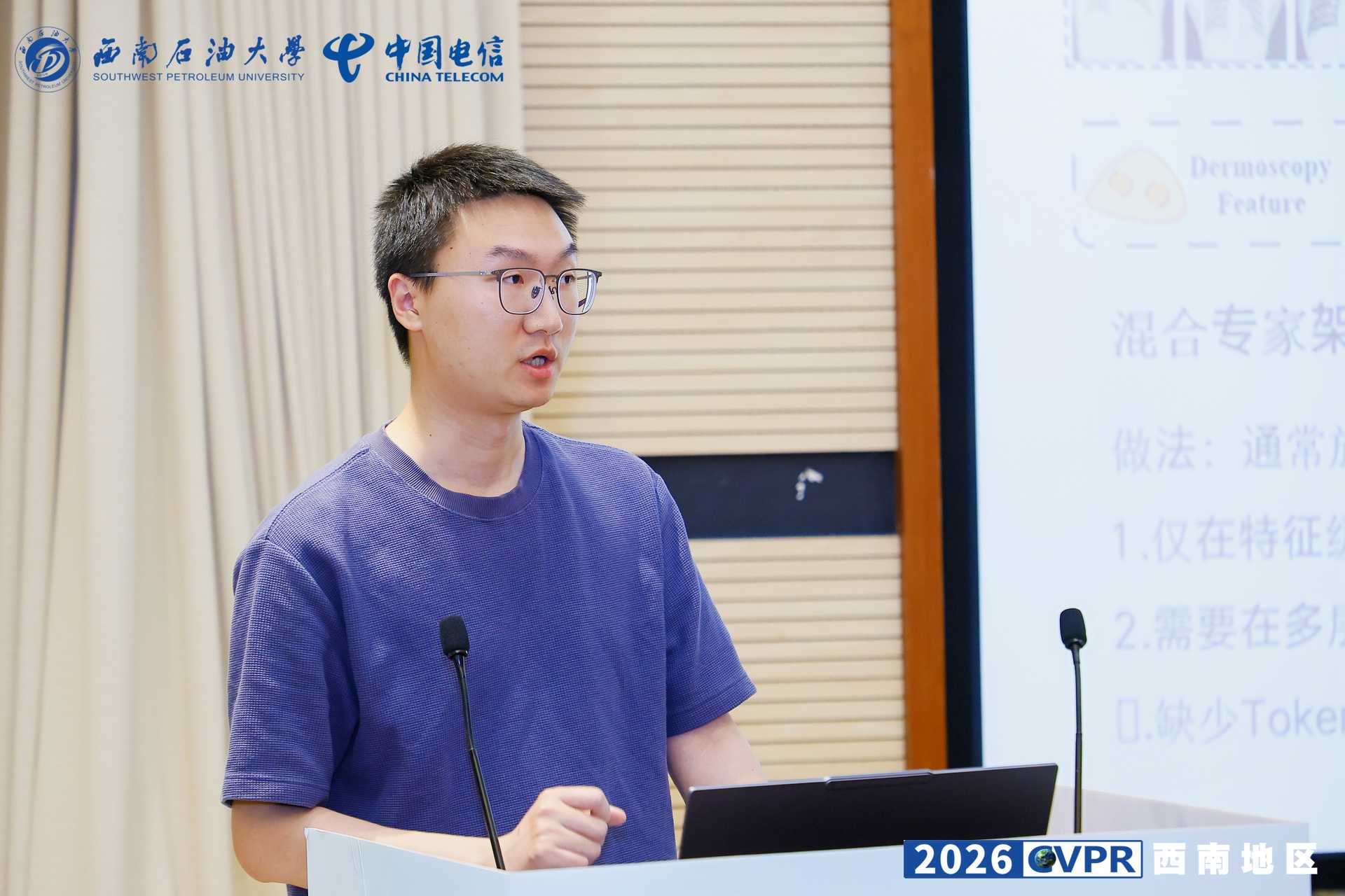 春生万物,智启未来。2026年4月18日,由四川省人工智能学院、中国图象图形学学会(CSIG)青年工作委员会、中国计算机学会(CCF)成都分部联合主办,西南石油大学、中国电信四川分公司、四川大学及电子科技大学共同承办的“2026 CVPR 西南地区预分享会”在西南石油大学思学楼 A114 隆重举行。视觉计算实验室博士生卢玉杰,刘宜松代表团队参会,并就实验室最新被国际计算机视觉顶级会议 CVPR 2026 接收的工作进行了深度的学术汇报。